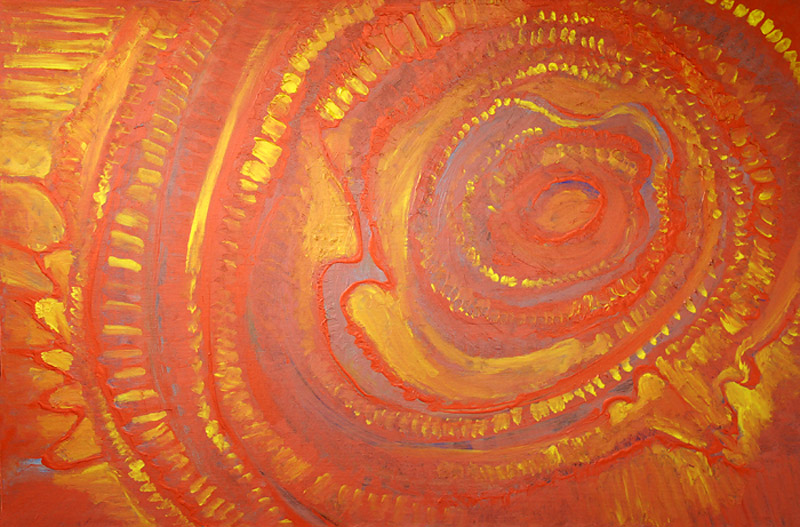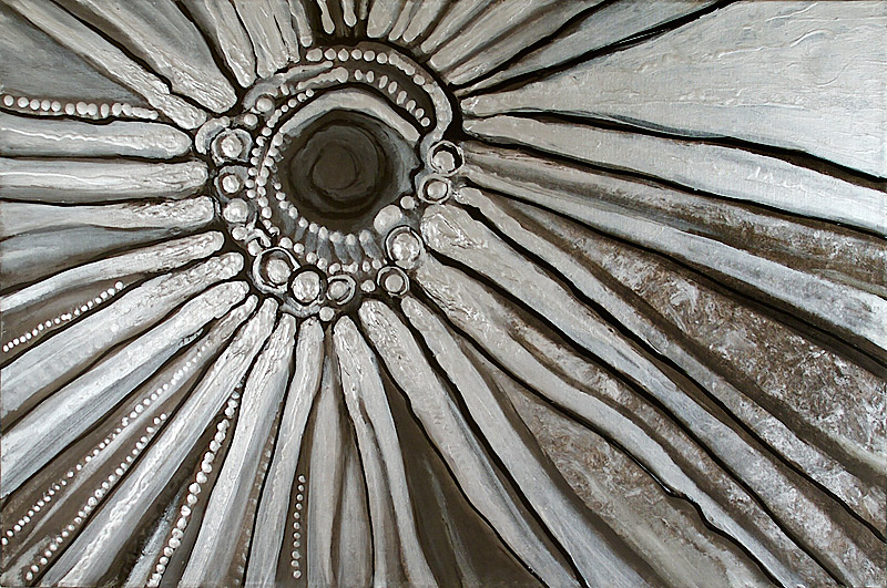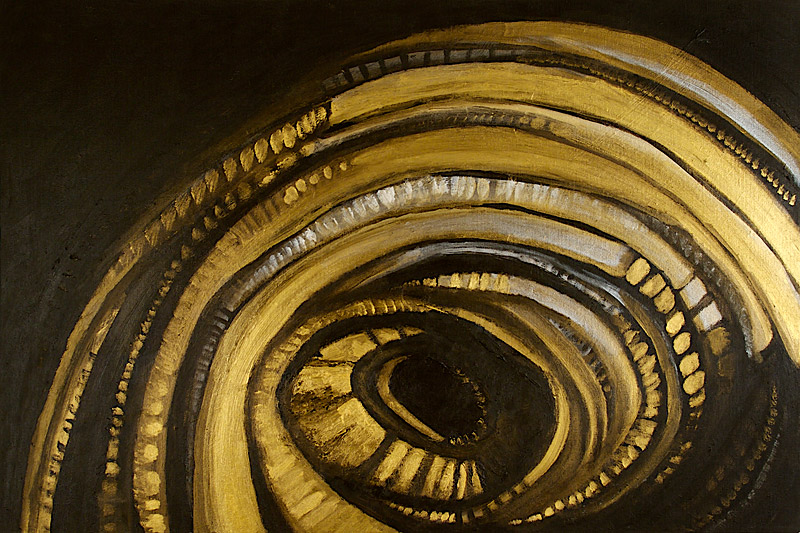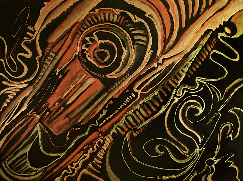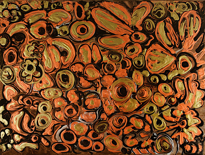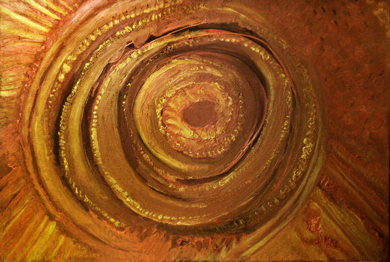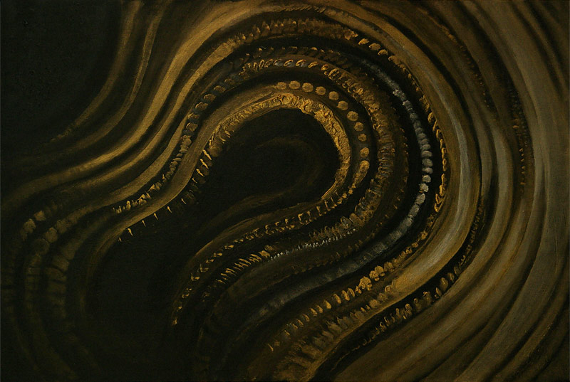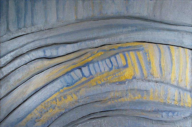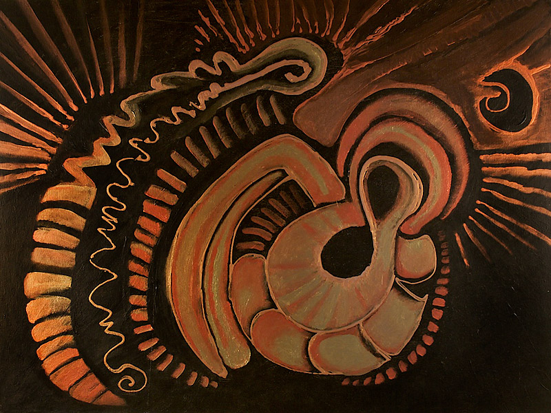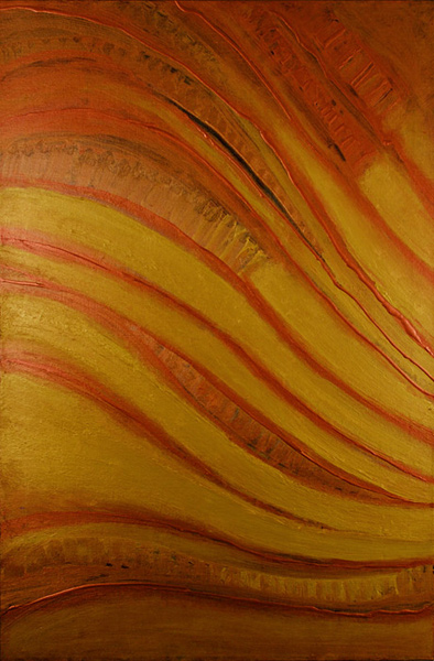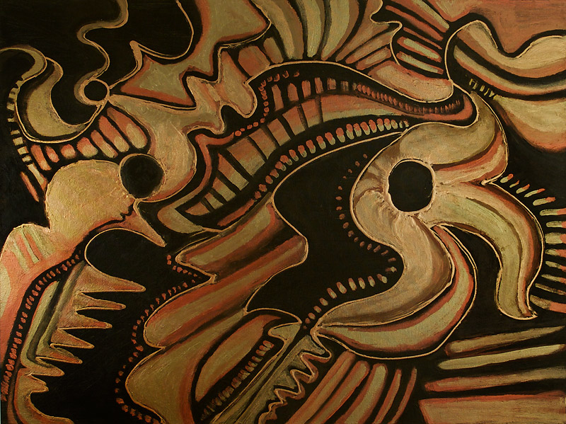 His art work during this period, outstands for the bright metallic tones of silver, steel, copper, bronze, gold, mother pearl, and luminescent tones.